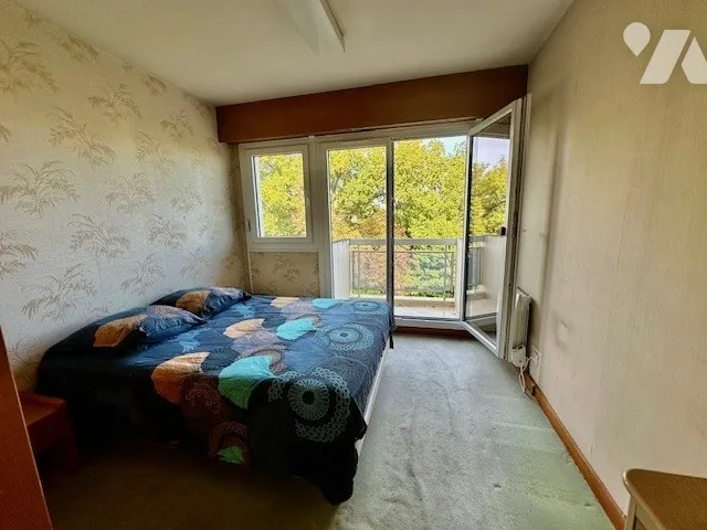 Il se compose d’une entrée avec placard, d’un salon salle à manger sur balcon exposé ouest, cuisine avec cellier-buanderie, et d’une partie nuit avec 3 chambres dont une sur balcon, placards, salle d’eau rénovée, toilette séparé.